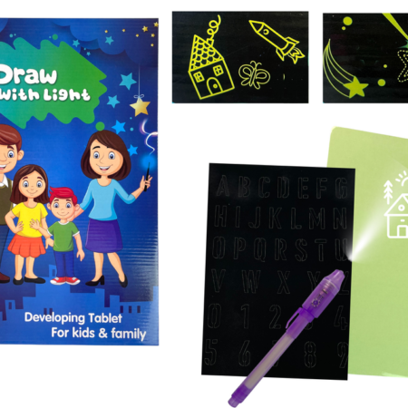 Magiczny Tablet Do Rysowania Światłem Grafika Litery Jak zdusić wieczorną nudę? Proponujemy magiczny tablet do rysowania światłem. Niesamowity efekt i fantastyczna zabawa! Pobudzi ona kreatywność i wyobraźnie malucha. Ogromny tablet najlepiej sprawdzi się w zaciemnionych pomieszczenia, wtedy rysunki będą bardzo dobrze widoczne. Za pomocą długopisu ze specjalnym światełkiem, który jest dołączony do zestawu, można stworzyć…