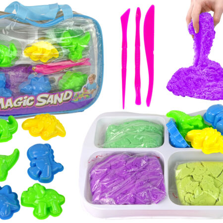 Magiczny Piasek Kinetyczny Dinozaury Szkielety Foremki 6szt Piasek kinetyczny dinozaury. Ten magiczny piasek zachwyca swoimi niezwykłymi właściwościami – dzięki jego kinetycznej naturze, drobinki piasku przyciągają się do siebie, co pozwala na tworzenie niesamowitych kształtów bez obawy, że się rozsypią. Jednocześnie zachowuje on cudowną plastyczność, umożliwiając stworzenie nawet najbardziej wymyślnych kształtów, jakie znajdą się w wyobraźni…