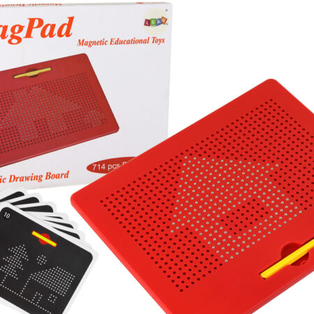 Magnetyczna Tablica Pad Edukacyjny Kulki Szablony Czerwona 714 ele. Tablica magnetyczna posiada aż 714 otworów / kulek. Można rysować na niej jak na kartce papieru. Wystarczy, że dziecko dotknie odpowiedniego otworu rysikiem, a kulka znajdująca się wewnątrz tablicy uniesie się i wypełni otwór, następnie wystarczy wcisnąć kulki do środka aby stworzyć nowy obrazek. Zabawa z tablicą…