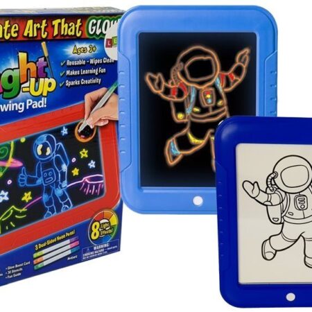 Magiczny Tablet MAGIC PAD LED Znikopis Tablica 3D Świeci Neon Dodaj uroku swojej sztuce dzięki naszej nowej zabawce jaką jest magiczny tablet. To zabawna, rozjaśniająca podkładka do rysowania, która oświetli rysunek Twojego dziecka. Unikalny ekran jest krystalicznie czysty, wystarczy nacisnąć przycisk aby zobaczyć jak rysunki świecą na wiele efektów świetlnych. Kiedy skończysz po prostu wyczyść…