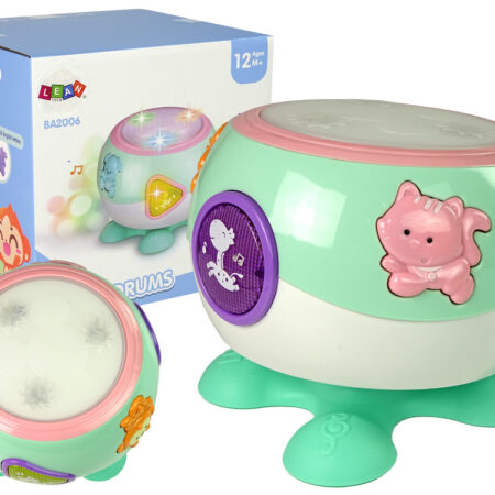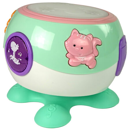 Muzyczny Bębenek Melodie Światła Piosenki Zwierzątka Turkusowy Interaktywna zabawka, w postaci bębenka, dla maluszków zapewni mnóstwo wesołej zabawy każdemu dziecku. Na zabawce przedstawione są zwierzątka. Zabawka wykonana jest z plastiku, w uroczych kolorowych barwach. Membrana perkusji wykonana jest z miękkiego materiału, dzięki czemu dziecko będzie mogło bezpiecznie w nią uderzać. Zabawka pozytywnie wpływa na rozwój dziecka. Dzieci poznają…