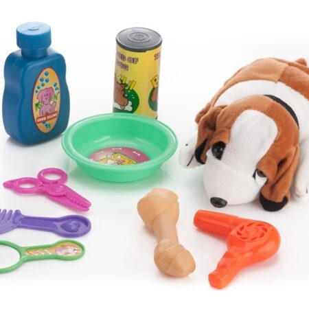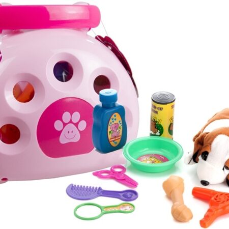Pies w Budzie Akcesoria Do Pielęgnacji Każde dziecko marzy o własnym pupilu. Dzięki temu zestawowi to marzenie może się spełnić. Dziecko przez zabawę uczy się również opiekuńczości, a do tego ma swojego pierwszego pluszowego zwierzaka. Cały zestaw jest starannie wykonany w bajkowej kolorystyce. Zestaw zawiera akcesoria do pielęgnacji pieska takie jak grzebień, suszarka, szczotka czy miska na…