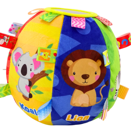 Piłka Pluszowa Miękka Sensoryczna Edukacyjna Grzechotka Zwierzątka 18cm Piłka edukacyjna dla dzieci to miękka, pluszowa zabawka o średnicy 18 cm, która jest idealna dla maluchów do zabawy i nauki. Jest zaprojektowana z myślą o stymulacji różnych zmysłów i rozwijaniu umiejętności poznawczych dziecka.Piłka jest podzielona na kilka sekcji, każda w innym, żywym kolorze, co przyciąga uwagę…