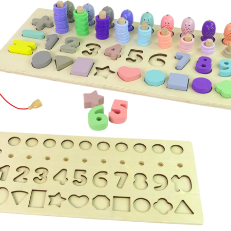 Plansza Drewniana Edukacyjna 4 w 1 Liczby Figury Geometryczne Łowienie Rybek Idealna plansza edukacyjna do rozpoczęcia nauki liczenia, wspomagająca w rozwoju Twojego dziecka. Maluch poprzez zabawę rozwinie się wielopłaszczyznowo, co zaprocentuje w przyszłości. Kolorowa układanka zainteresuje malucha, każde dziecko znajdzie coś dla siebie. Z uśmiechem na twarzy podejdzie do wyzwania. Kreatywna zabawka, która zabije nudę! Plansza…