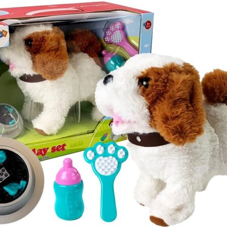 Pluszowy Piesek na Baterie Biały w Brązowe Łaty Akcesoria Dźwięk Twojemu dziecku marzy się miniaturowy? Dzięki tej zabawce umożliwisz swojemu maluchowi zabawę z małowymiarowym futrzakiem bez potrzeby kupowania prawdziwego psiaka! Nasza zabawka to idealne psiaka – z jej pomocą nauczysz dziecko odpowiedzialności związanej z posiadaniem pupila. A w przyszłości będzie mógł już sam zaopiekować się…