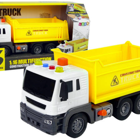 Pojazd Budowlany Wywrotka 1:16 Żółta Unoszona Naczepa Mała budowa w dziecięcym pokoju, czemu nie ? Wywrotka to jedna z maszyn budowlanych, której nie może zabraknąć na budowie. Transportowanie materiałów lub odpadów w trakcie prac jest bardzo ważne. To prawdziwe wyzwanie dla małych budowniczych i wielbicieli ciężkiego sprzętu budowlanego. Zabawa z jej wykorzystaniem wpłynie na wyobraźnię i kreatywność dziecka, a…