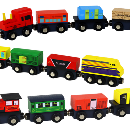 Pociąg Kolejka Drewniana Lokomotywa Na Magnes Wagoniki Zestaw Mix 12 ele. To idealna zabawka dla małych miłośników pociągów i podróży. Zestaw zawiera trzy urocze pociągi drewniane umieszczone w drewnianym organizerze, co sprawia, że przechowywanie i przenoszenie zestawu jest łatwe i wygodne. Każda lokomotywa i wagonik zostały wyposażone w magnesy, co pozwala dziecku swobodnie zmieniać kolejność wagoników…