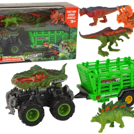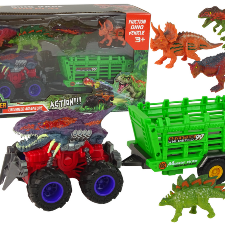 Pojazd z Motywem Dinozaura Przyczepa 4 Sztuki Dinozaurów Zielono- czerwone autko z motywem dinozaura to wyjątkowa zabawka, która łączy w sobie fascynację motoryzacją i miłość do prehistorycznych stworzeń. Ten niezwykły pojazd wyróżnia się zarówno wyglądem, jak i zestawem dodatkowych elementów, które czynią go jeszcze bardziej interesującym. Posiada on duże, gumowe koła, które gwarantują doskonałą…