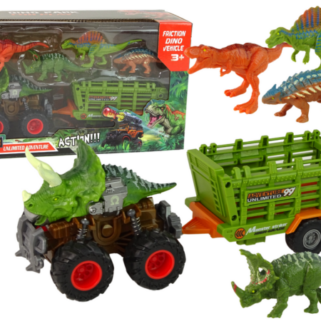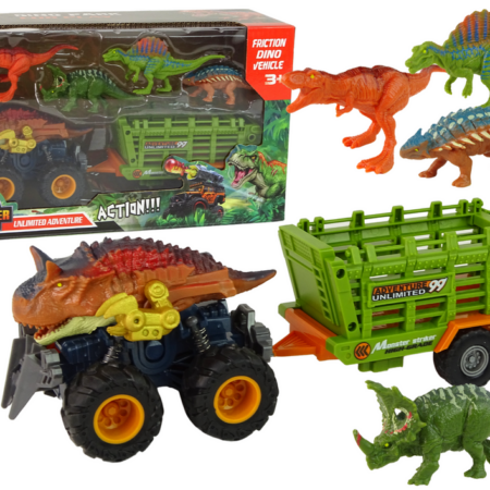 Pojazd z Motywem Dinozaura Przyczepa 4 Sztuki Dinozaurów Brązowe autko z motywem dinozaura to wyjątkowa zabawka, która łączy w sobie fascynację motoryzacją i miłość do prehistorycznych stworzeń. Ten niezwykły pojazd wyróżnia się zarówno wyglądem, jak i zestawem dodatkowych elementów, które czynią go jeszcze bardziej interesującym. Posiada on duże, gumowe koła, które gwarantują doskonałą trakcję…